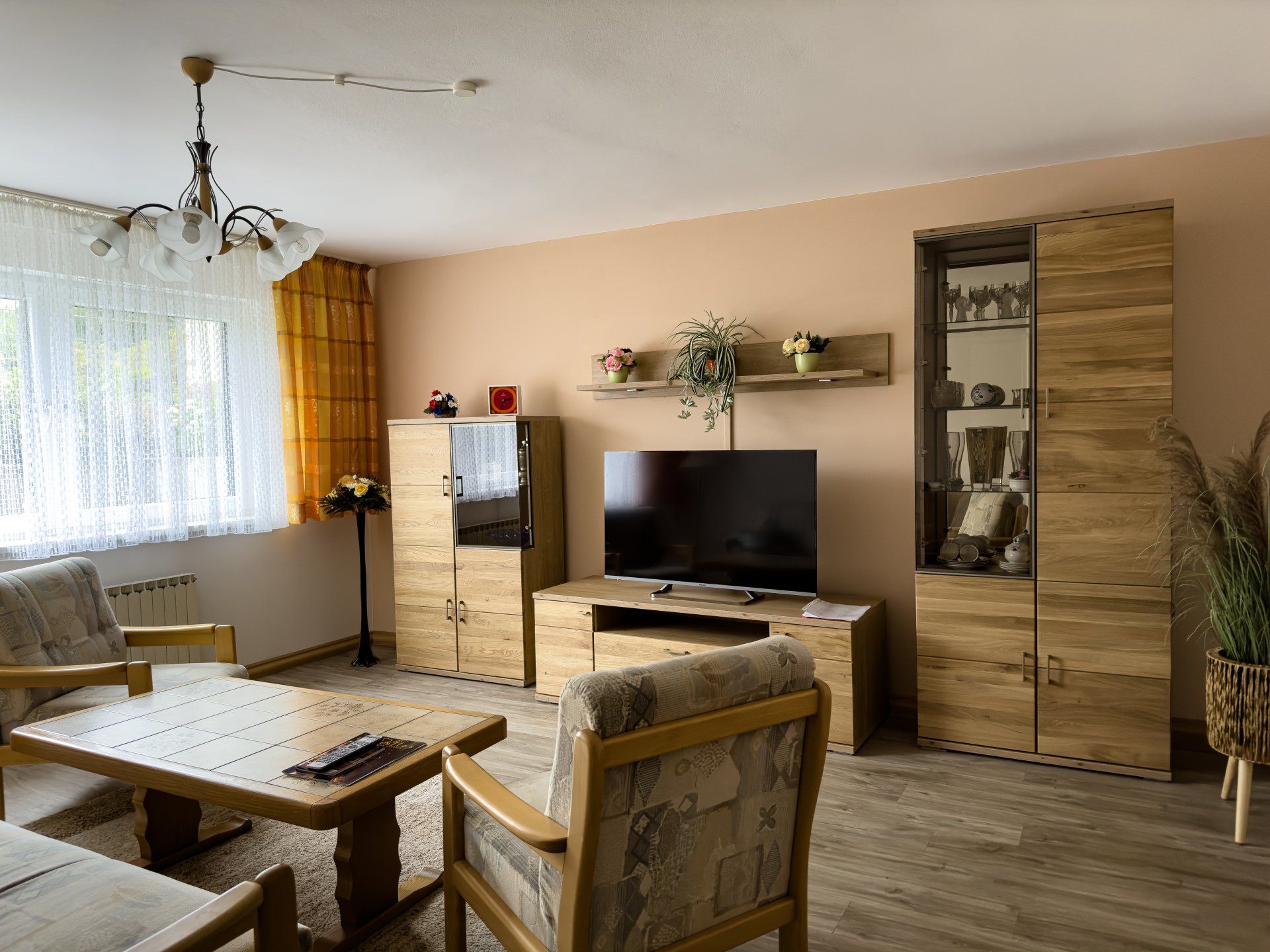 Unser Appartement im Erdgeschoß verfügt über Wohnzimmer, Schlafzimmer, separate Küche, Dusche/WC und hat eine Fläche von 50m². Im Wohnzimmer steht für eine 3. Person bzw. wenn Sie getrennt schlafen möchten ein zusätzliches Schrankbett zur Verfügung. Auf der gemütlichen Terrasse direkt am Garten können Sie Ihr Frühstück in der Sonne genießen.